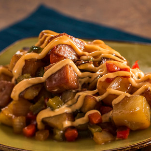 Crispy Pork Belly with Black Beans, Tomato and Onions (gluten friendly) - $5.75